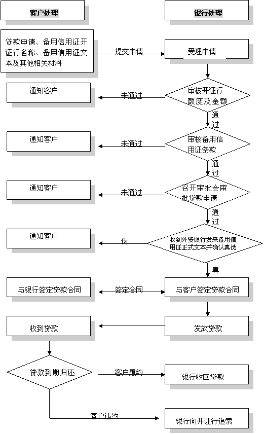 2.我行内部审批通过、收到其他银行开来的备用信用证正式文本并验证其真实性后,与客户签订有关贷款合同;